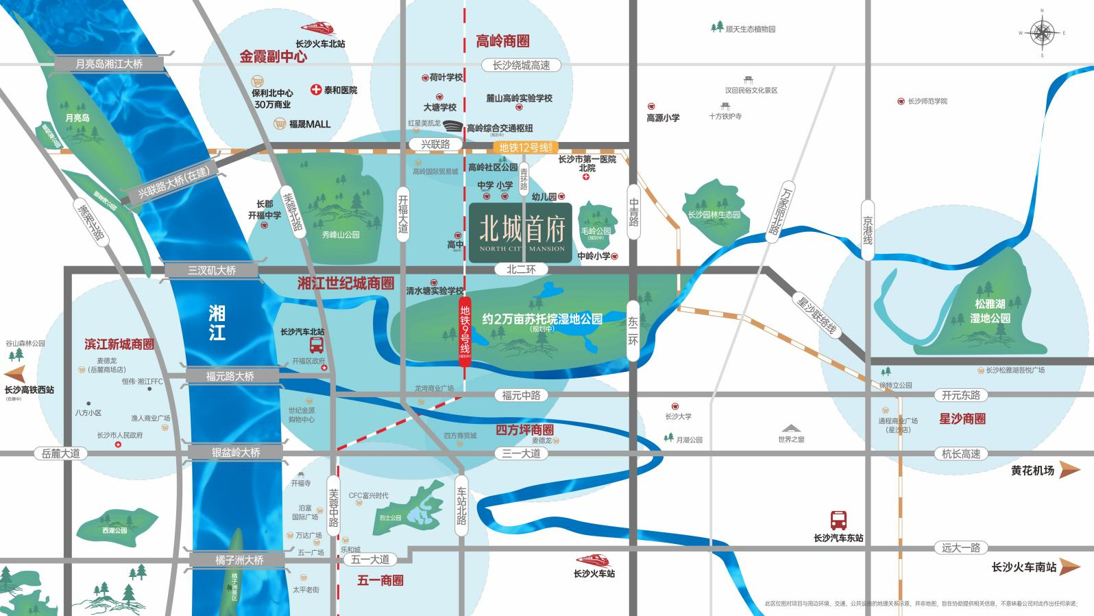 開福北二環旁,全維優質配套 項目主干道青環路無縫對接北二環,片區規劃9/12號雙地鐵 5縱3橫交通路網,實現主城各個都市圈互通互聯 湘江世紀城/福晟MALL等商圈在側,坐擁享兩山一園一濕地,城市少數的宜居勝地 湘江世紀城距離項目直線距離約3.3公里;福晟MALL距離項目直線距離約4公里;數據來源百度測距
