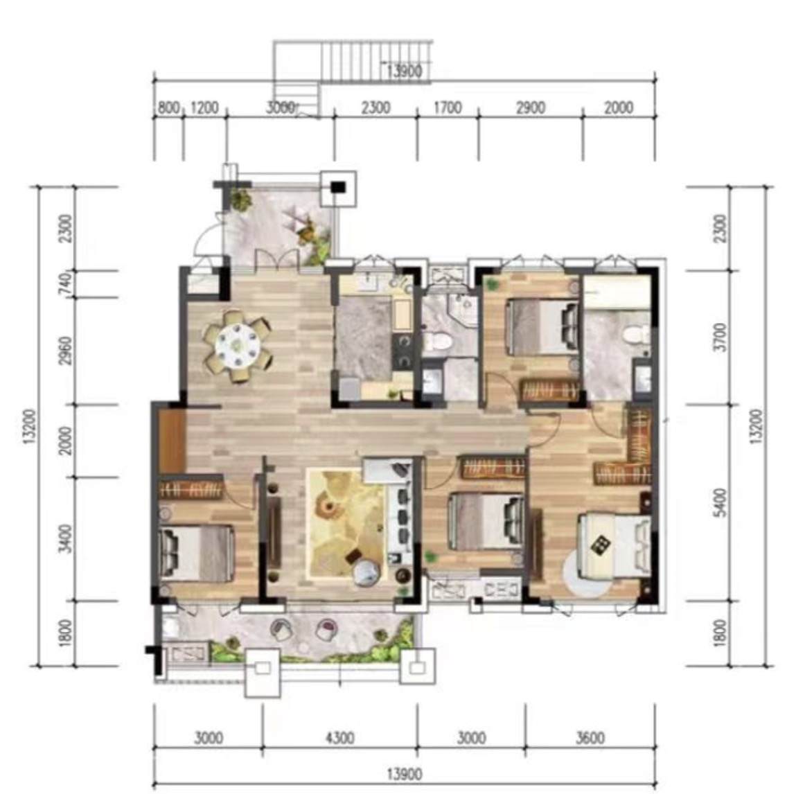 C3戶型(洋房三層) 建筑面積:146㎡ 四室兩廳二衛 南北通透,入戶花園設計,4.3m陽臺/3.6米超大露臺; 4.3m大陽臺設計,景觀視野好; 父母房分隔設計,獨享個人空間,私密性佳。 C4戶型(洋房四層) 建筑面積:140㎡ 三室兩廳二衛 主臥附帶3.6m*1.5m露臺,生活品質得到提升;4.3米大陽臺/露臺,舒適性佳。