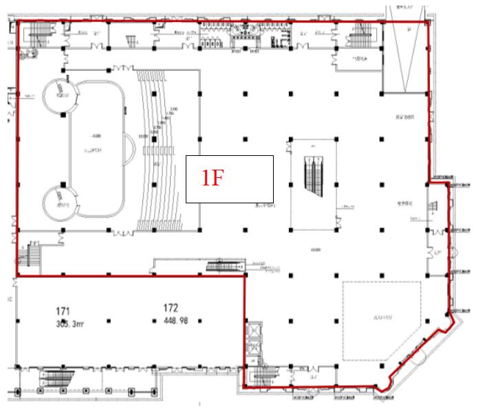 S1棟173F號商鋪位于悠游小鎮核心位置,地處主干道木蓮東路與雨河路交匯處,一至三層總建筑總面積12377.24㎡(一、二樓層高均為6米,三樓層高5.6米)。