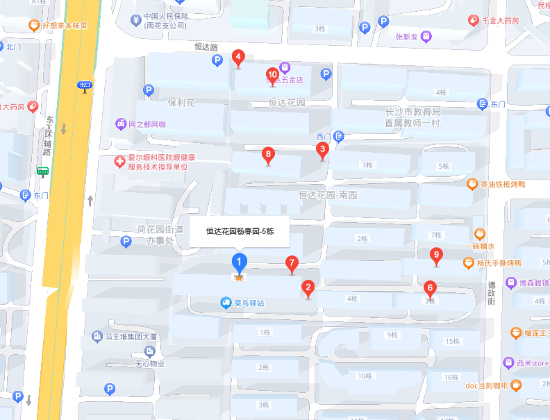 所在小區東臨德政街,北臨恒達路;所在樓棟不臨外部道路 |