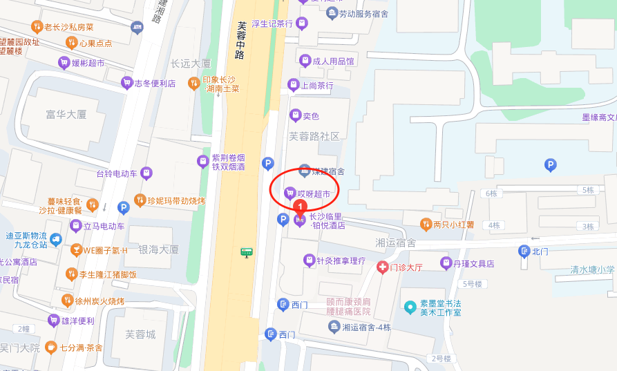 四至 東臨清水塘路;西接中國郵政儲蓄銀行;南臨八一路;北通芙蓉廣場、五一大道